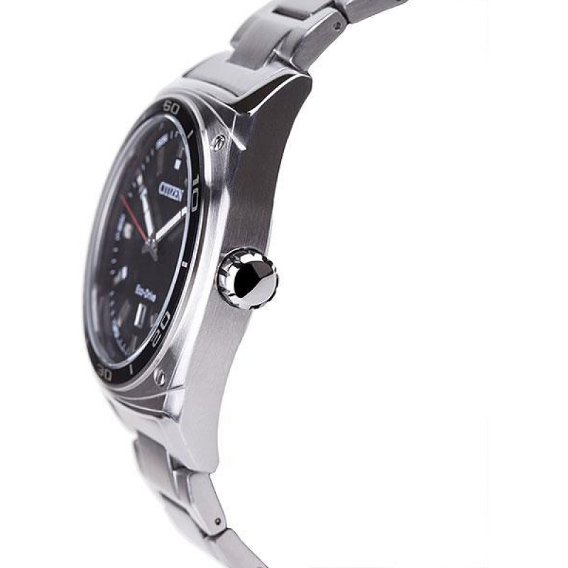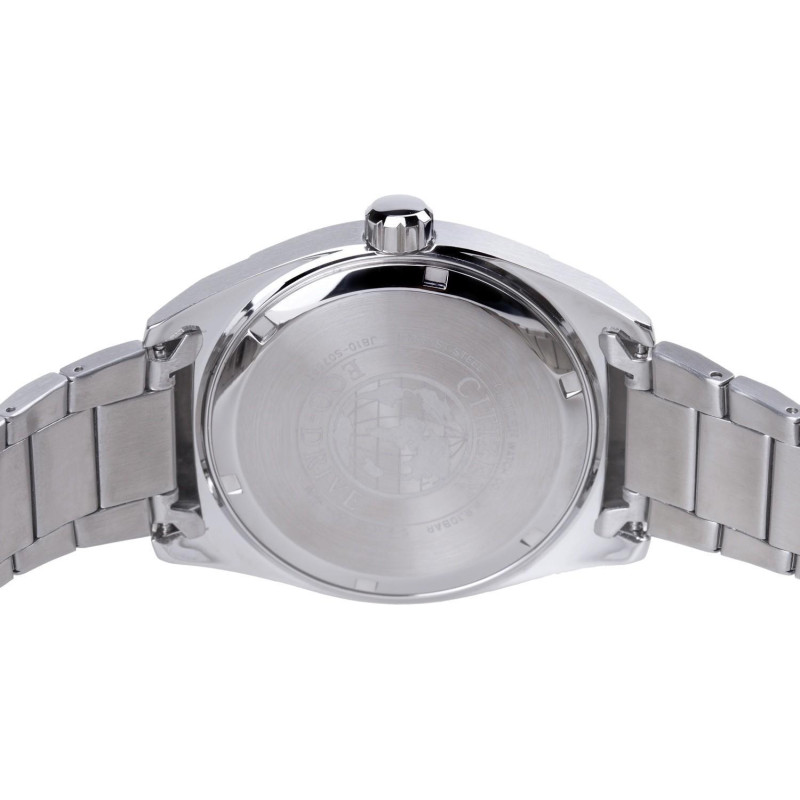 Модель имеет водонепроницаемость 100 м. Корпус выполнен из материала – сталь + PVD. Прочное минеральное стекло надежно защищает циферблат от ударов и других повреждений. Удобный стальной браслет позволяет часам комфортно сидеть на запястье. Из дополнительных функций имеются: дата, секунды, солнечная батарея.