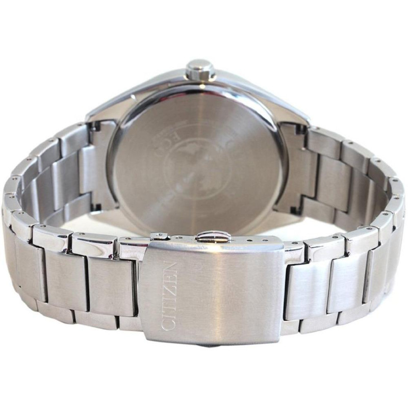 Модель имеет водонепроницаемость 50 м. Корпус выполнен из материала – сталь. Прочное минеральное стекло надежно защищает циферблат от ударов и других повреждений. Удобный стальной браслет позволяет часам комфортно сидеть на запястье. Из дополнительных функций имеются: дата, секунды, солнечная батарея.