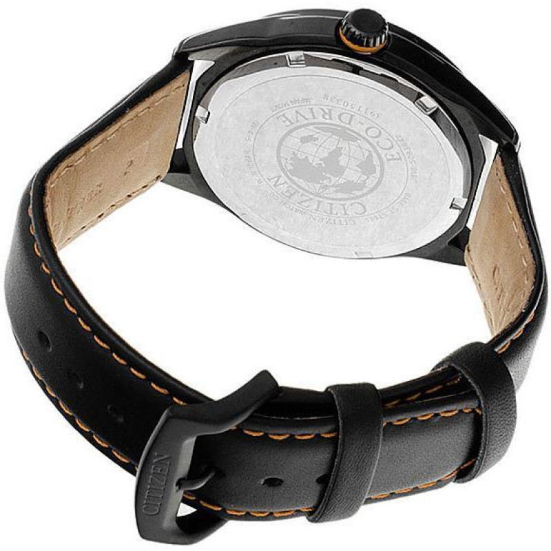 Модель имеет водонепроницаемость 100 м. Корпус выполнен из материала – сталь + PVD. Прочное минеральное стекло надежно защищает циферблат от ударов и других повреждений. Удобный кожаный ремешок позволяет часам комфортно сидеть на запястье. Из дополнительных функций имеются: дата, индикатор зарядa элемента питания, секунды, солнечная батарея.
