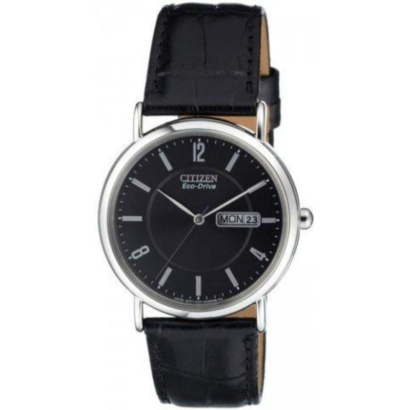 Модель имеет водонепроницаемость 30 м. Корпус выполнен из материала – сталь. Прочное минеральное стекло надежно защищает циферблат от ударов и других повреждений. Удобный кожаный ремешок позволяет часам комфортно сидеть на запястье. Из дополнительных функций имеются: дата, день недели, солнечная батарея.