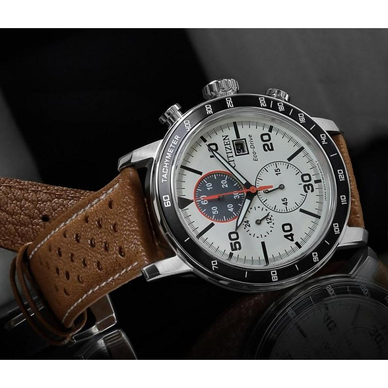 Модель имеет водонепроницаемость 100 м. Корпус выполнен из материала – сталь. Прочное минеральное стекло надежно защищает циферблат от ударов и других повреждений. Удобный кожаный ремешок позволяет часам комфортно сидеть на запястье. Из дополнительных функций имеются: EOL, дата, дополнительный показатель времени в 24-х часовом формате, секунды, хронограф.
