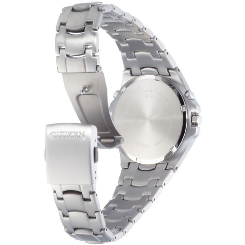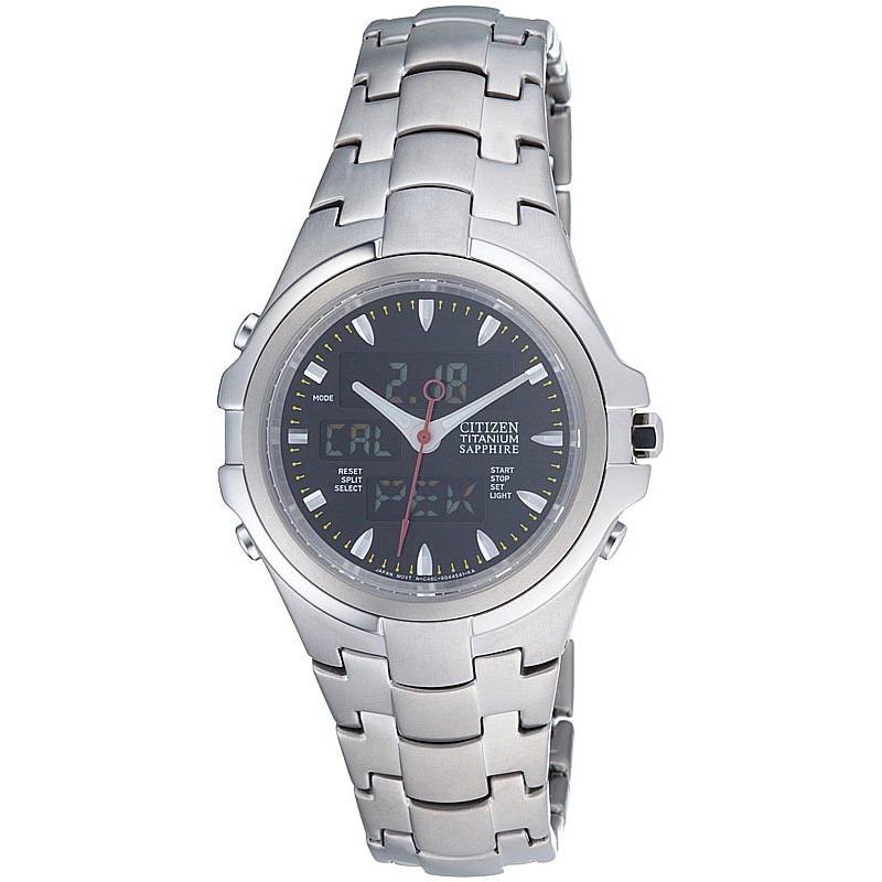 Модель имеет водонепроницаемость 100 м. Корпус выполнен из материала – титан. Прочное сапфировое стекло надежно защищает циферблат от ударов и других повреждений. Удобный титановый браслет позволяет часам комфортно сидеть на запястье. Из дополнительных функций имеются: автоматический календарь, будильник, мировое время, секундомер, таймер обратного отсчёта, электролюминесцентная подсветка.