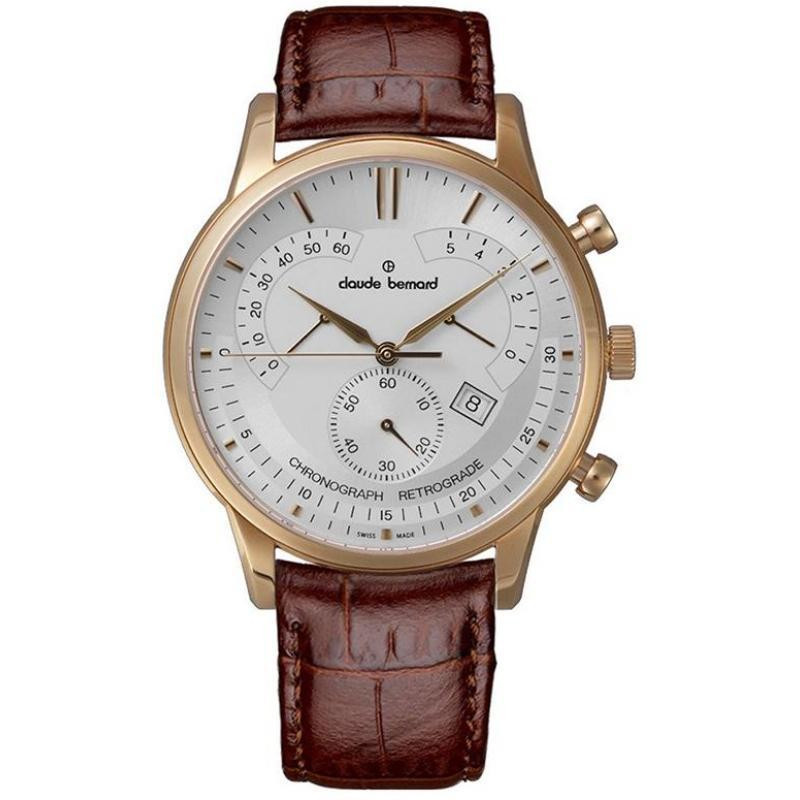 Модель имеет водонепроницаемость 50 м. Корпус выполнен из материала – сталь + PVD. Прочное сапфировое стекло надежно защищает циферблат от ударов и других повреждений. Удобный кожаный ремешок позволяет часам комфортно сидеть на запястье. Из дополнительных функций имеются: дата, ретроградный хронограф, секунды.