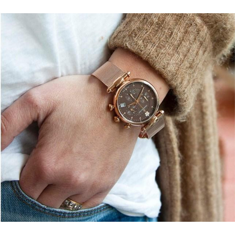 Модель имеет водонепроницаемость 30 м. Корпус выполнен из материала – сталь + PVD. Прочное сапфировое стекло надежно защищает циферблат от ударов и других повреждений. Удобный сталь + PVD браслет позволяет часам комфортно сидеть на запястье. Из дополнительных функций имеются: дата, секунды, хронограф.