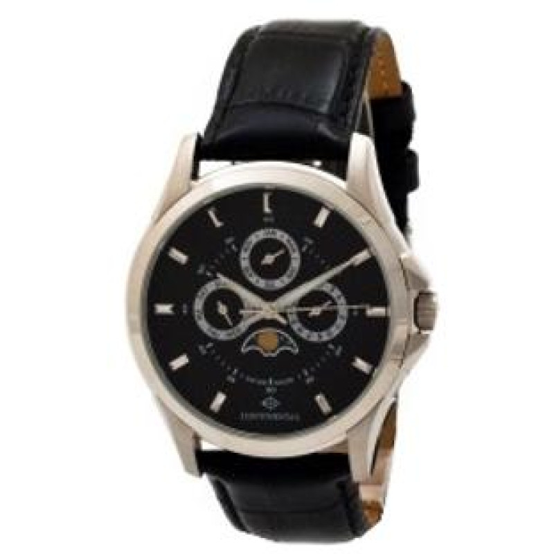 Модель имеет водонепроницаемость 30 м. Корпус выполнен из материала – сталь. Прочное минеральное стекло надежно защищает циферблат от ударов и других повреждений. Удобный кожаный ремешок позволяет часам комфортно сидеть на запястье. Из дополнительных функций имеются: дата, день недели, месяц, отображение возраста и фазы луны.