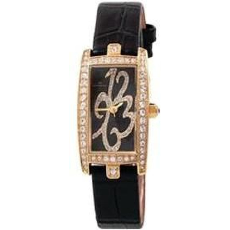 Корпус полностью покрыт золотым PVD-покрытием и украшен фианитами..