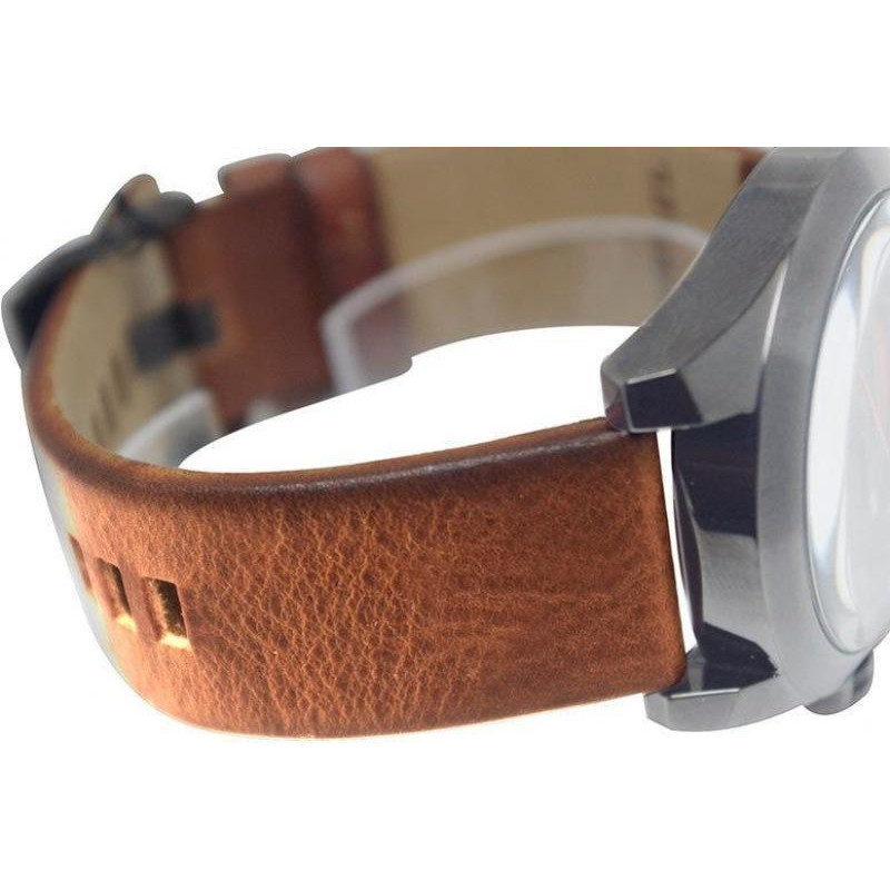 Корпус выполнен из стали с полным PVD покрытием серого цвета. Коричневый кожаный ремешок. Циферблат ..