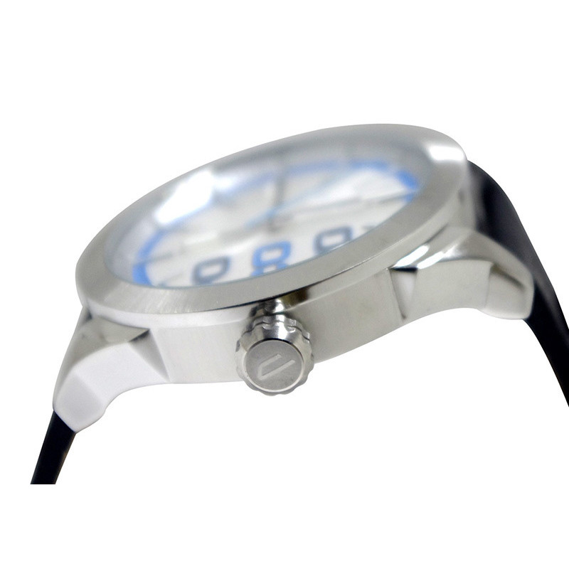 Модель имеет водонепроницаемость 100 м. Корпус выполнен из материала – сталь. Прочное минеральное стекло надежно защищает циферблат от ударов и других повреждений. Удобный кожаный ремешок позволяет часам комфортно сидеть на запястье. Из дополнительных функций имеются: секунды.