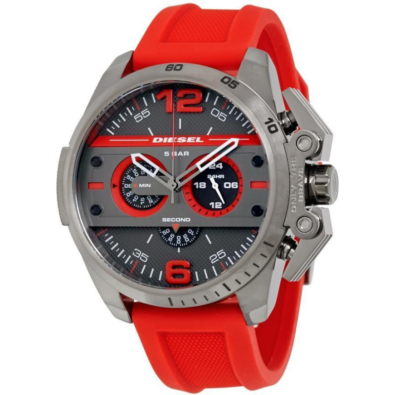 Мужские наручные часы Diesel DZ4388 с хронографом имеют внушительные габариты – 55х48х13мм. На сером..