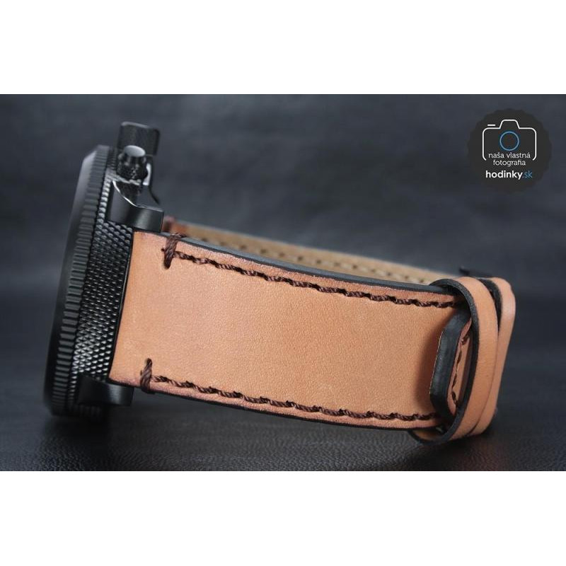 Модель имеет водонепроницаемость 50 м. Корпус выполнен из материала – сталь + PVD. Прочное минеральное стекло надежно защищает циферблат от ударов и других повреждений. Удобный кожаный ремешок позволяет часам комфортно сидеть на запястье. Из дополнительных функций имеются: дата, секунды, хронограф.