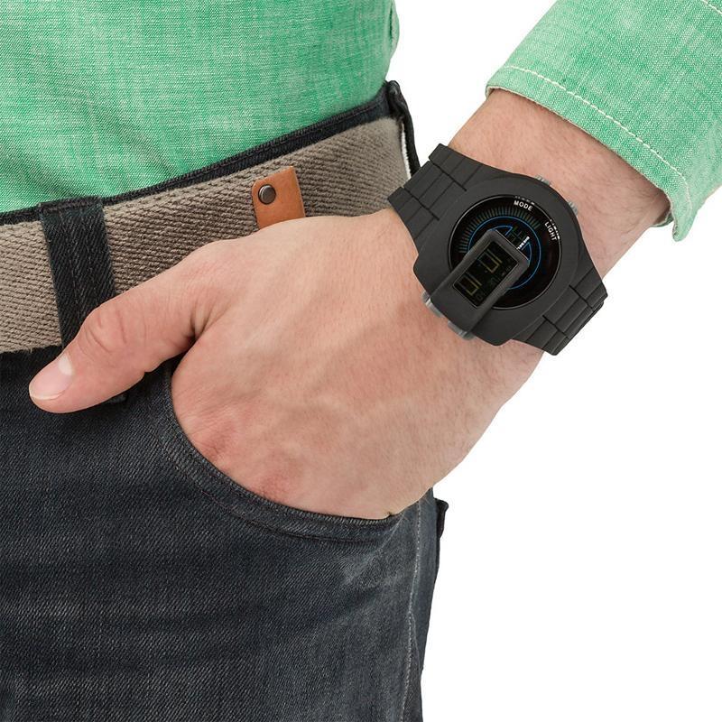 Спортивный дизайн этих фэшн-часов с электронной индикацией выполнен в черном цвете с использованием ..