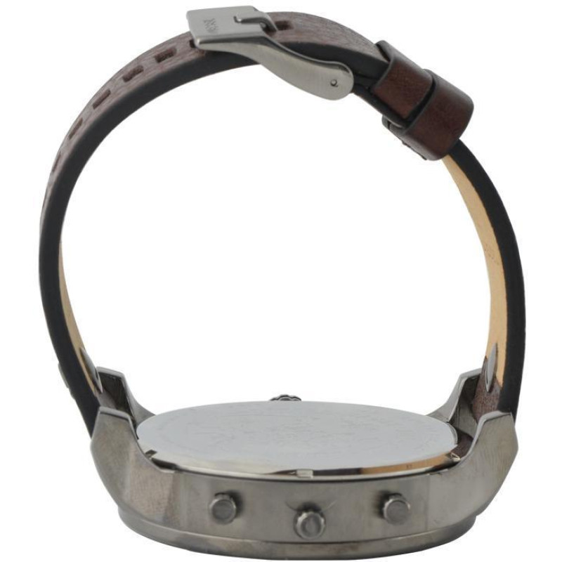 Корпус выполнен из нержавеющей стали с полным PVD покрытием черного цвета. Коричневый кожаный ремешо..