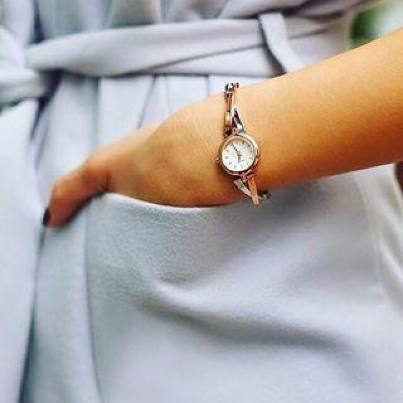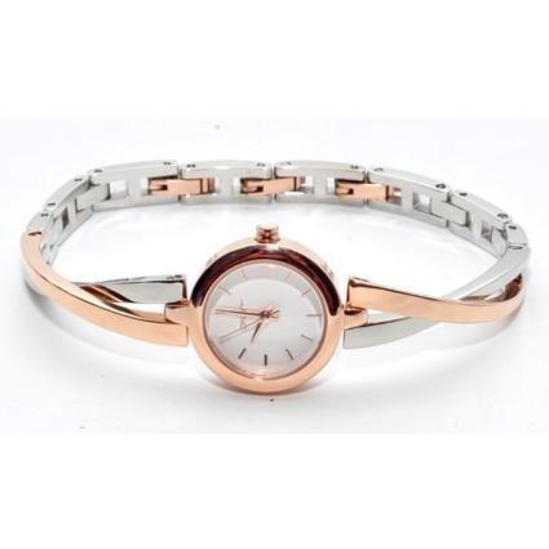 Корпус и браслет выполнены из стали с частичным PVD покрытием цвета розового золота. Циферблат - бел..