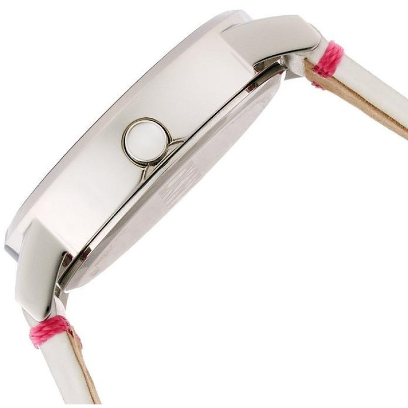Корпус выполнен из стали. Белый кожаный ремешок. Цвет циферблата - розовый. Индикация - метки. Засте..
