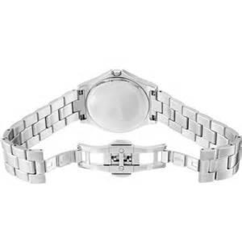 Модель имеет водонепроницаемость 50 м. Корпус выполнен из материала – сталь. Прочное минеральное стекло надежно защищает циферблат от ударов и других повреждений. Удобный стальной браслет позволяет часам комфортно сидеть на запястье. Из дополнительных функций имеются: дата, секунды.