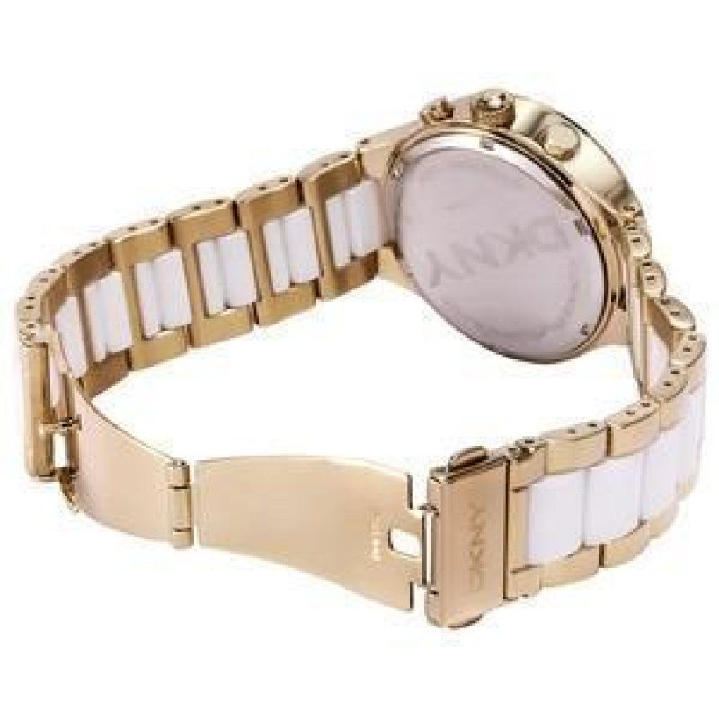 Корпус и браслет выполнены из стали с полным золотистым PVD покрытием. Браслет имеет белые керамичес..