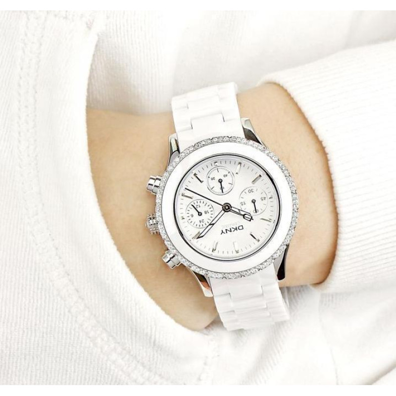 Корпус выполнен из стали. Безель выполнен из белой керамики. Белый керамический браслет. Цвет циферб..