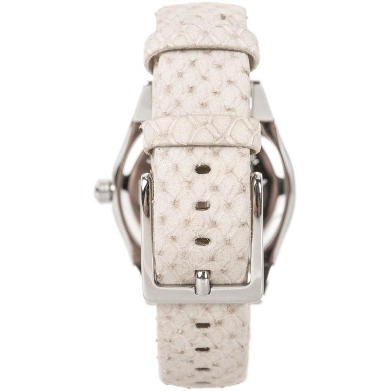 Корпус выполнен из стали. Бежевый ремешок из кожи питона. Цвет циферблата - серебристый, перламутров..