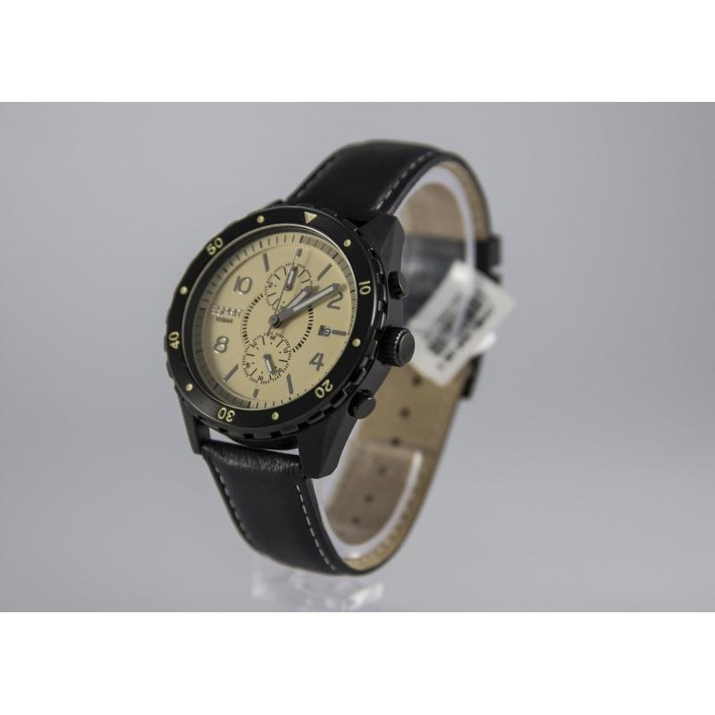 Модель имеет водонепроницаемость 100 м. Корпус выполнен из материала – сталь. Прочное минеральное стекло надежно защищает циферблат от ударов и других повреждений. Удобный кожаный ремешок позволяет часам комфортно сидеть на запястье. Из дополнительных функций имеются: дата, минуты, секунды, хронограф.