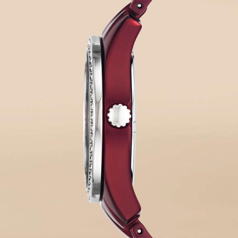 Корпус и браслет выполнены из алюминия с бардовым PVD покрытием. Цвет циферблата — бардовый. Индикац..