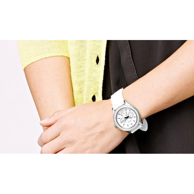 Корпус и браслет выполнены из нержавеющей стали. Цвет циферблата — белый, перламутровый. Индикация —..