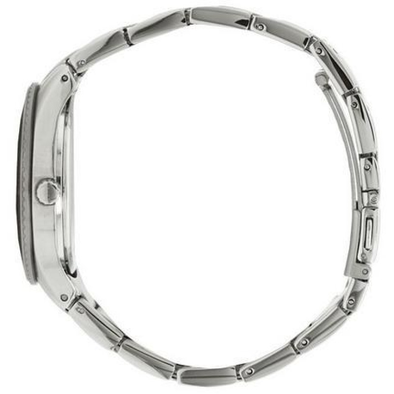 Модель имеет водонепроницаемость 50 м. Корпус выполнен из материала – сталь. Прочное минеральное стекло надежно защищает циферблат от ударов и других повреждений. Удобный стальной браслет позволяет часам комфортно сидеть на запястье. Из дополнительных функций имеются: дата, день недели, дополнительный показатель времени в 24-х часовом формате, секунды.