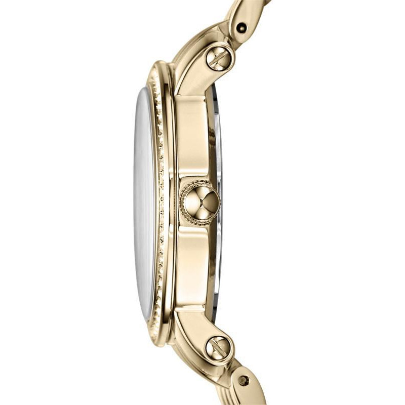 Корпус и браслет полностью покрыты золотым IP-покрытием. Перламутровый циферблат..