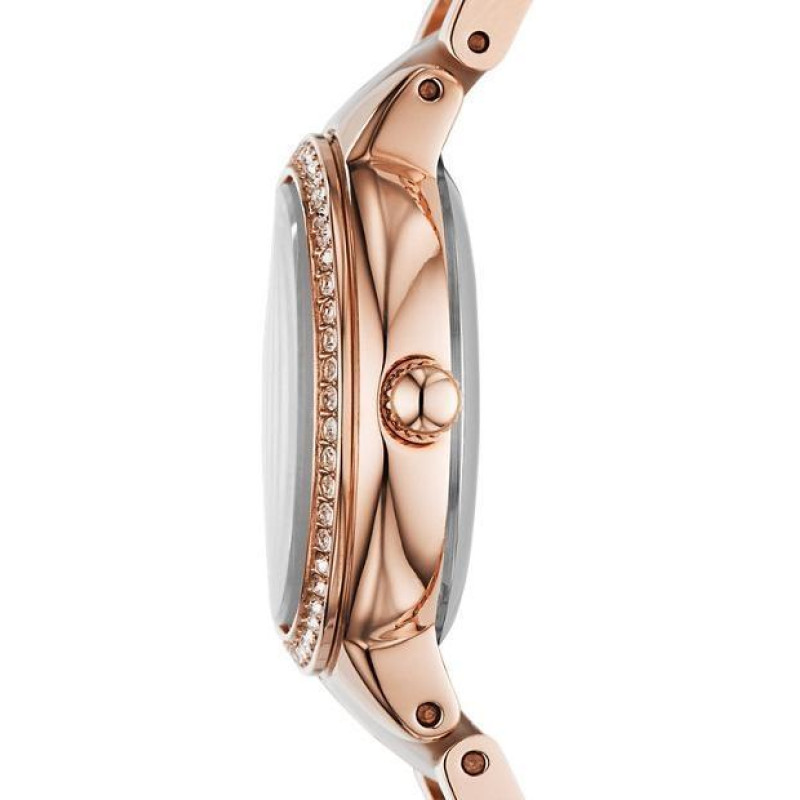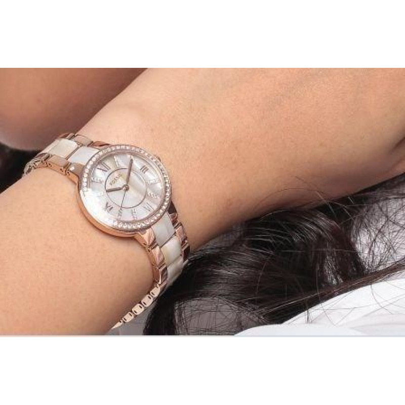 Корпус и браслет выполнены из стали с PVD покрытием цвета розового золота. На браслете присутствуют ..