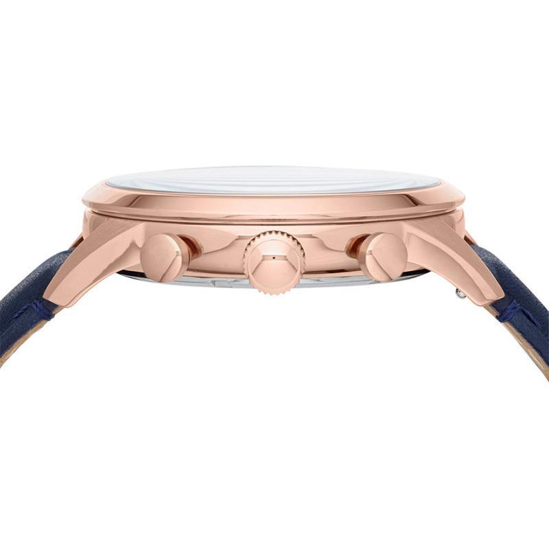 Корпус из нержавеющей стали покрыт PVD-покрытием цвета розового золота. Синий кожаный ремешок. Ширин..