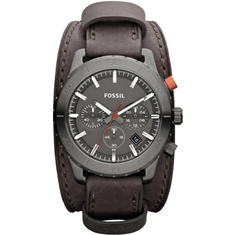 Отличительной внешностью обладают часы Fossil FOS FS4616. Дерзкое сочетание угольного цвета с жженым..
