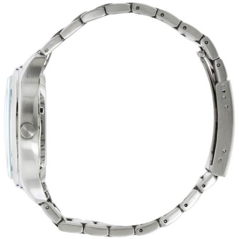 Модель имеет водонепроницаемость 50 м. Корпус выполнен из материала – сталь. Прочное минеральное стекло надежно защищает циферблат от ударов и других повреждений. Удобный стальной браслет позволяет часам комфортно сидеть на запястье. Из дополнительных функций имеются: минуты, секунды, часы.
