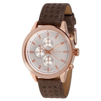 Модель имеет водонепроницаемость 30 м. Корпус выполнен из материала – алюминий + PVD. Прочное минеральное стекло надежно защищает циферблат от ударов и других повреждений. Удобный кожаный ремешок позволяет часам комфортно сидеть на запястье. Из дополнительных функций имеются: секунды.
