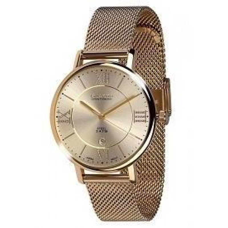 Модель имеет водонепроницаемость 30 м. Корпус выполнен из материала – сталь + PVD. Прочное минеральное стекло надежно защищает циферблат от ударов и других повреждений. Удобный сталь + PVD браслет позволяет часам комфортно сидеть на запястье. Из дополнительных функций имеются: дата, секунды.