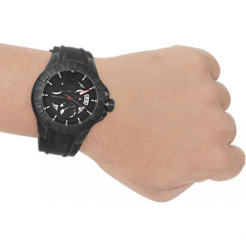Модель имеет водонепроницаемость 100 м. Корпус выполнен из материала – сталь + PVD. Прочное минеральное стекло надежно защищает циферблат от ударов и других повреждений. Удобный каучук ремешок позволяет часам комфортно сидеть на запястье. Из дополнительных функций имеются: дата, секунды.