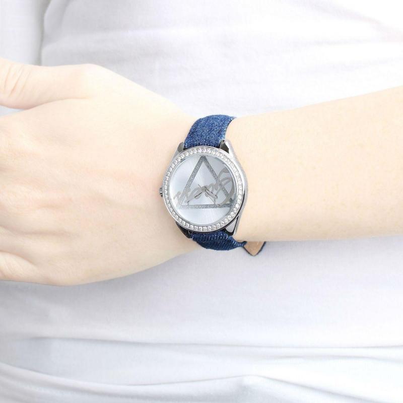 Используется точный кварцевый механизм Miyota. Корпус из нержавеющей стали. Ремешок из джинсы синего..