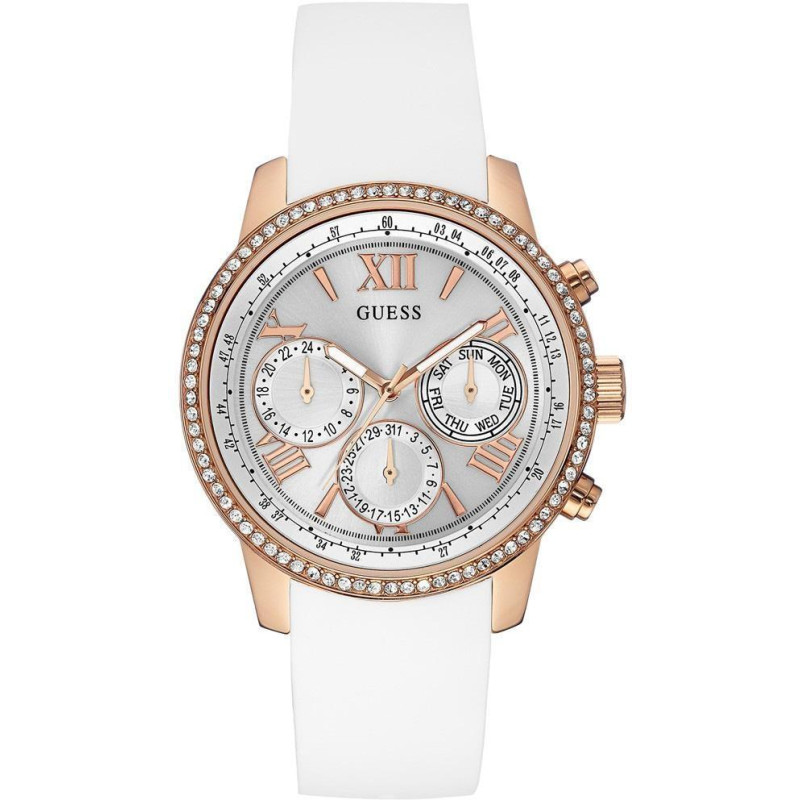 Женские функциональные часики от американского бренда Guess имеют надёжный кварцевый механизм. Часы ..