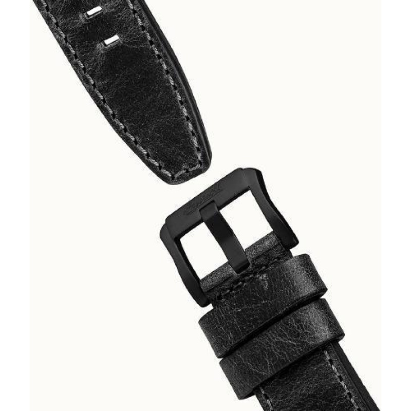 Модель имеет водонепроницаемость 100 м. Корпус выполнен из материала – сталь + PVD. Прочное минеральное стекло надежно защищает циферблат от ударов и других повреждений. Удобный кожаный ремешок позволяет часам комфортно сидеть на запястье. Из дополнительных функций имеются: год, дата, день недели, дополнительный показатель времени в 24-х часовом формате, месяц, секунды.