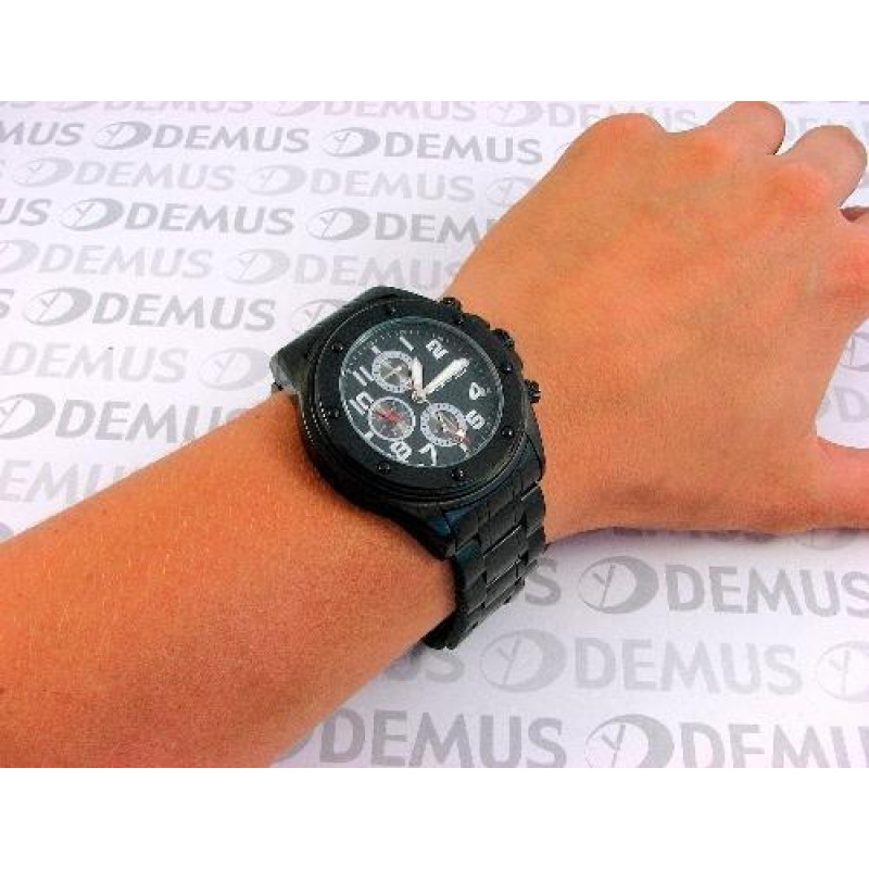 Модель имеет водонепроницаемость 30 м. Корпус выполнен из материала – сталь + PVD. Прочное минеральное стекло надежно защищает циферблат от ударов и других повреждений. Удобный сталь + PVD браслет позволяет часам комфортно сидеть на запястье. Из дополнительных функций имеются: дата, день недели, дополнительный показатель времени в 24-х часовом формате, месяц, секунды.
