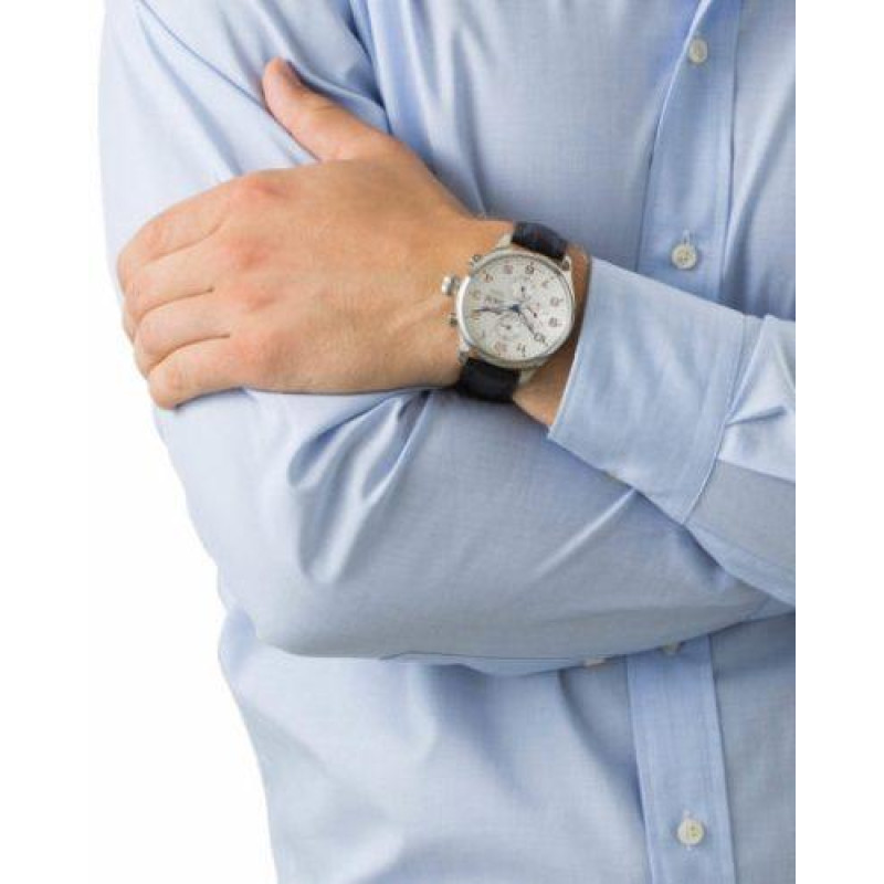 Модель имеет водонепроницаемость 30 м. Корпус выполнен из материала – сталь. Прочное минеральное стекло надежно защищает циферблат от ударов и других повреждений. Удобный кожаный ремешок позволяет часам комфортно сидеть на запястье. Из дополнительных функций имеются: год, дата, день недели, дополнительный показатель времени в 24-х часовом формате, месяц, секунды.