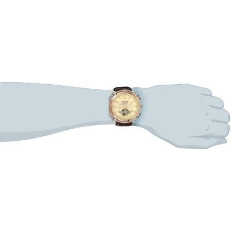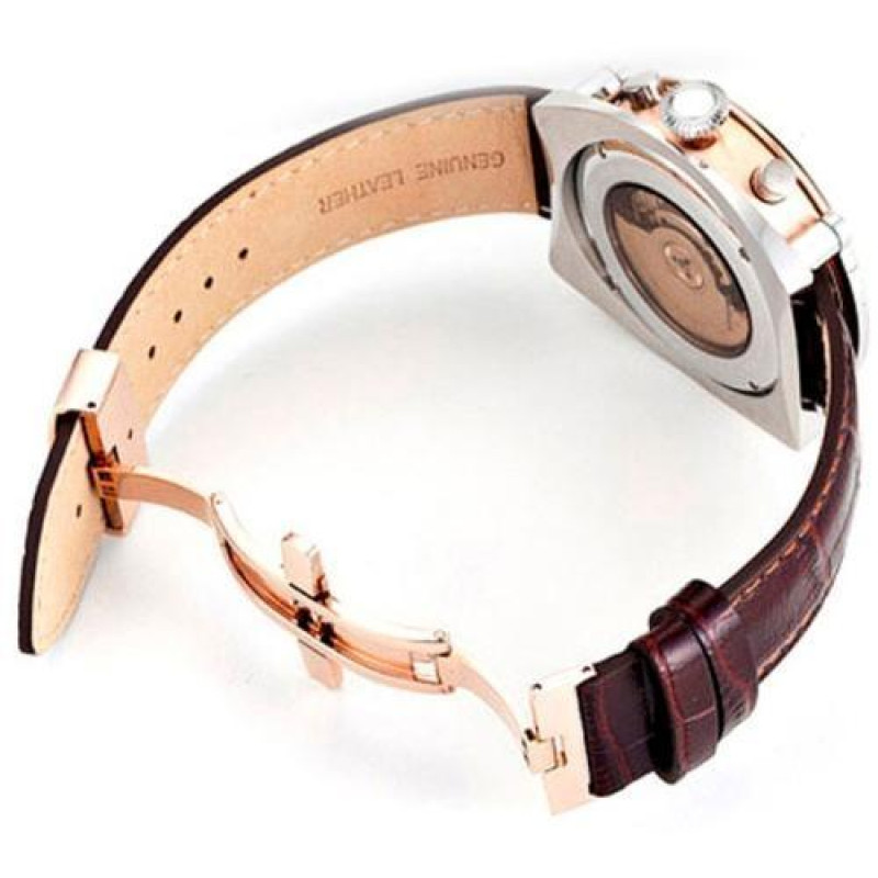 Модель имеет водонепроницаемость 50 м. Корпус выполнен из материала – сталь + PVD. Прочное минеральное стекло надежно защищает циферблат от ударов и других повреждений. Удобный кожаный ремешок позволяет часам комфортно сидеть на запястье. Из дополнительных функций имеются: год, дата, день недели, месяц, секунды.