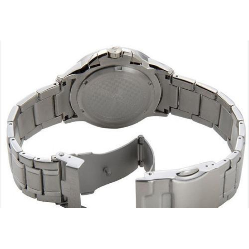 Модель имеет водонепроницаемость 100 м. Корпус выполнен из материала – сталь. Прочное минеральное стекло надежно защищает циферблат от ударов и других повреждений. Удобный стальной браслет позволяет часам комфортно сидеть на запястье. Из дополнительных функций имеются: дата, дополнительный показатель времени в 24-х часовом формате, секунды, хронограф.