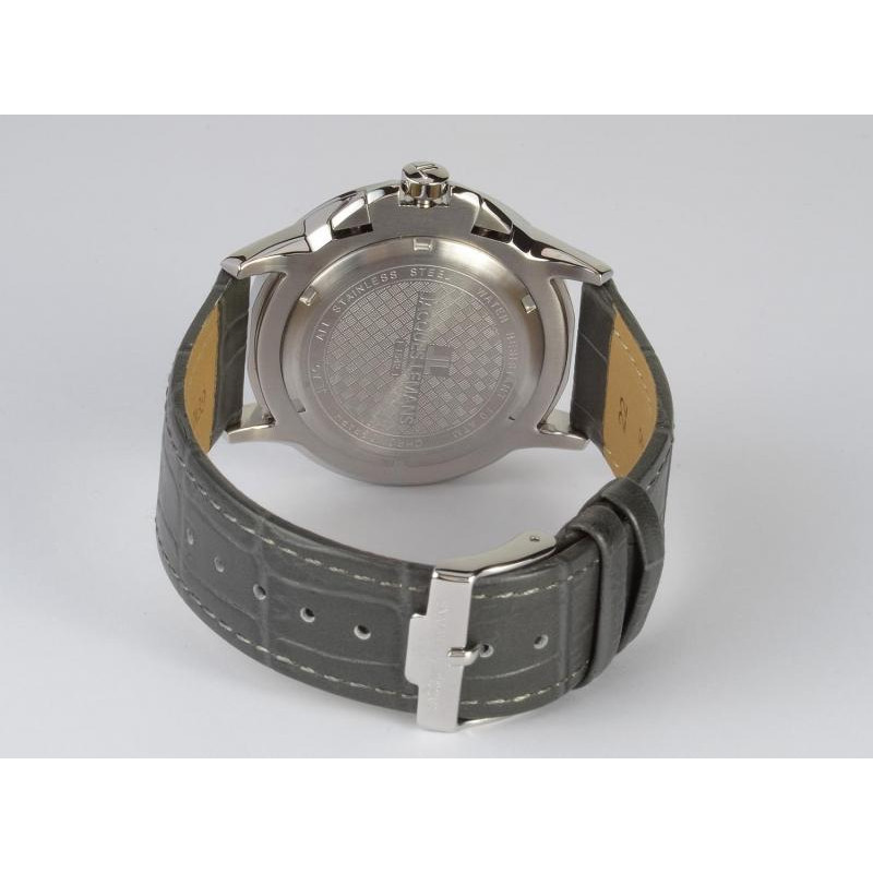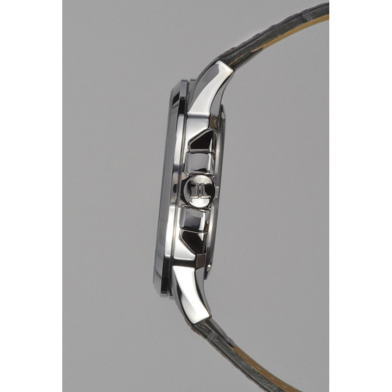 Модель имеет водонепроницаемость 100 м. Корпус выполнен из материала – сталь. Прочное минеральное стекло надежно защищает циферблат от ударов и других повреждений. Удобный кожаный ремешок позволяет часам комфортно сидеть на запястье. Из дополнительных функций имеются: дата, дополнительный показатель времени в 24-х часовом формате, секунды, хронограф.