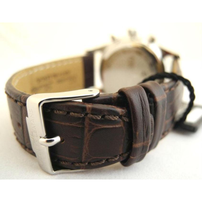 Корпус часов выполнен из нержавеющей стали. Коричневый кожаный ремешок. Цвет циферблата - белый. Инд..