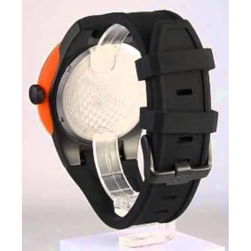 Модель имеет водонепроницаемость 200 м. Корпус выполнен из материала – сталь + PVD. Прочное минеральное стекло надежно защищает циферблат от ударов и других повреждений. Удобный каучук ремешок позволяет часам комфортно сидеть на запястье. Из дополнительных функций имеются: дата, минуты, секунды, часы.