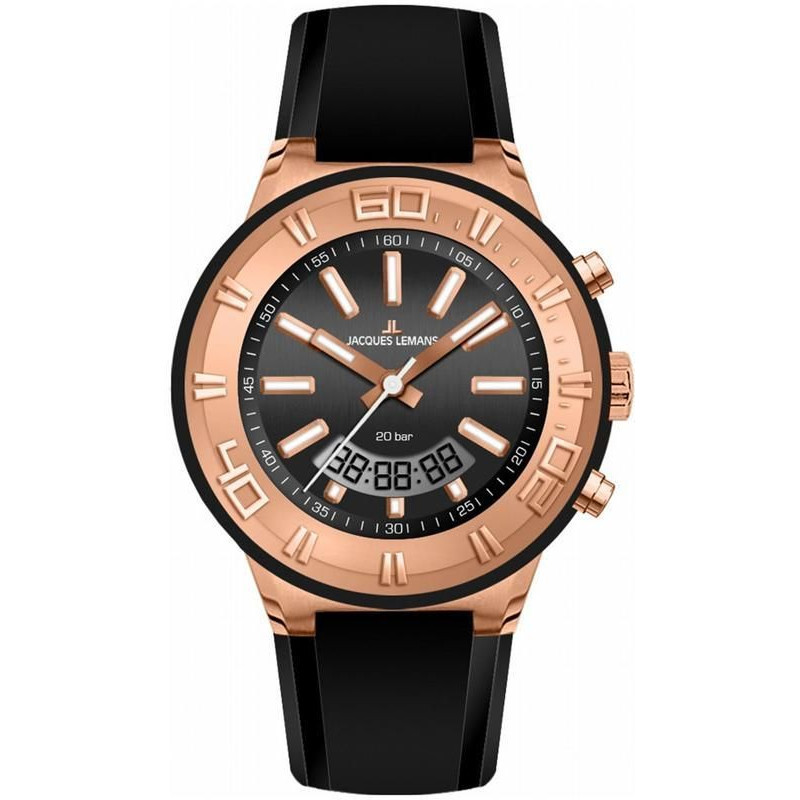 Модель Jacques Lemans 1-1786G отлично подойдет под спортивный и повседневный стиль одежды. Благодаря обширному функционалу, эти часы станут неотъемлемой частью мужчины во время занятий спортом.