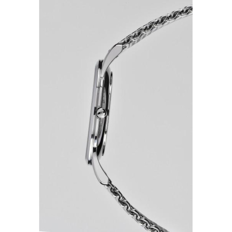 Модель имеет водонепроницаемость 50 м. Корпус выполнен из материала – сталь. Прочное минеральное стекло надежно защищает циферблат от ударов и других повреждений. Удобный стальной браслет позволяет часам комфортно сидеть на запястье.