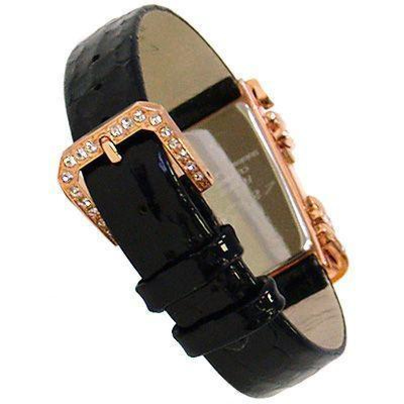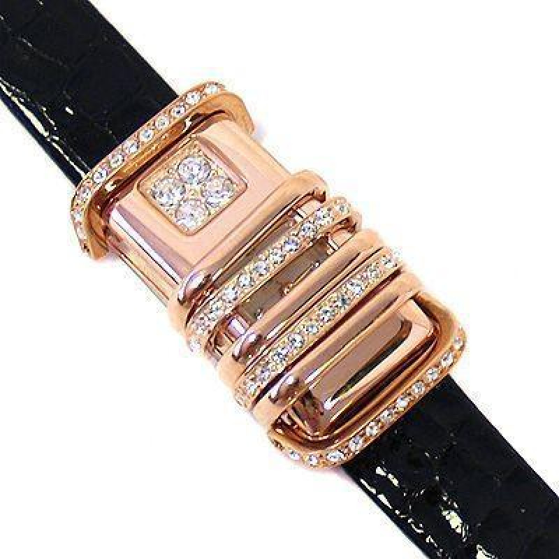 Корпус и циферблат украшены кристаллами Swarovski. Чёрный кожаный ремешок. Ширина ремешка — 16 мм. О..