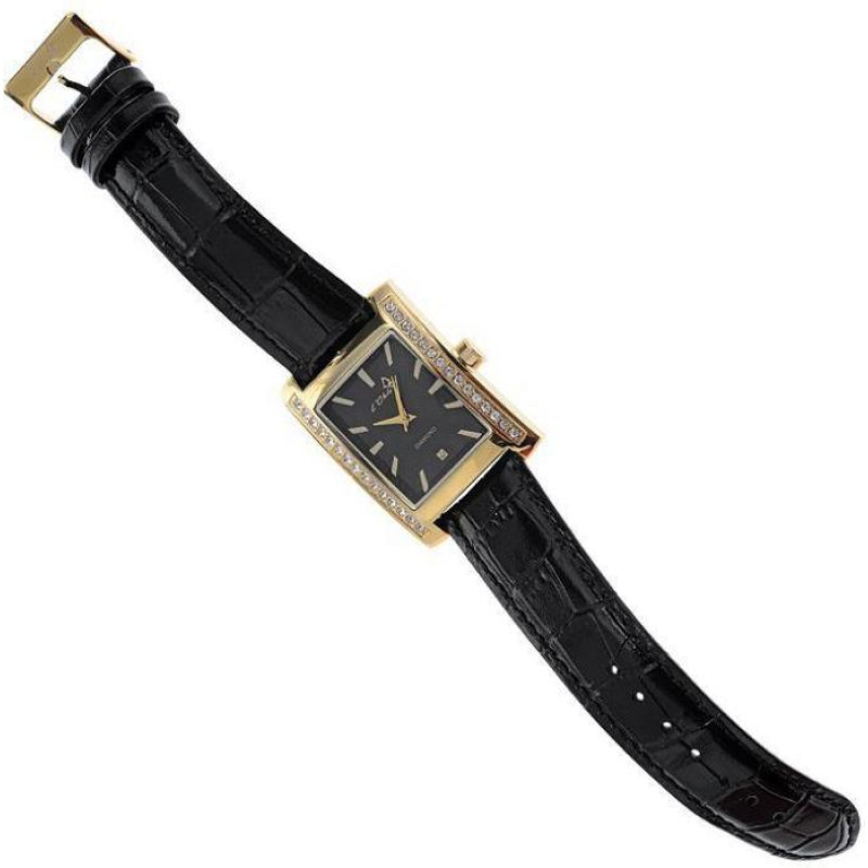 Корпус из нержавеющей стали и покрыты PVD — покрытием золотого цвета. Ремешок кожаный, чёрного цвета..