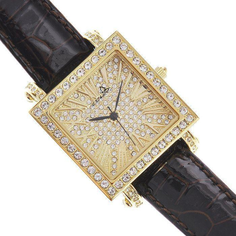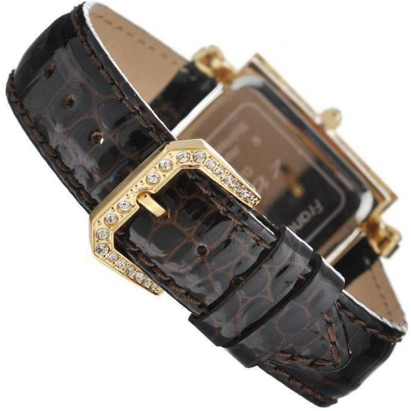 Корпус покрыт золотым PVD-покрытием, корпус и циферблат украшены кристаллами Swarovski. Коричневый к..
