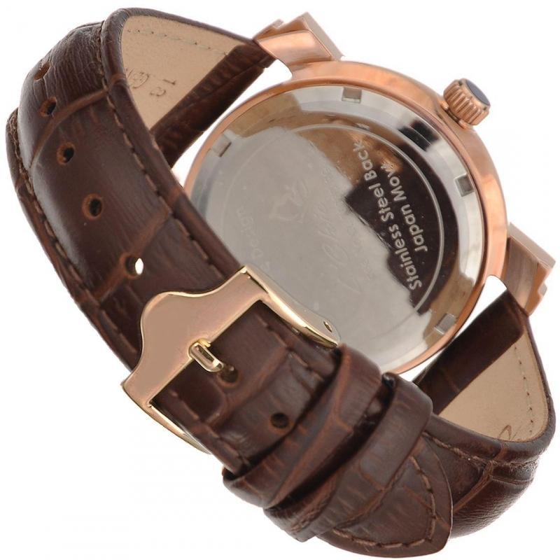 Корпус из нержавеющей стали и покрыты PVD — покрытием золотого цвета. Ремешок кожаный, коричневого ц..